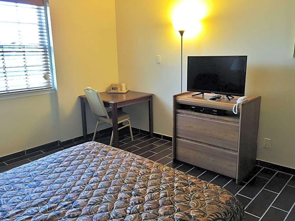 This room features a cable TV, refrigerator and a microwave.